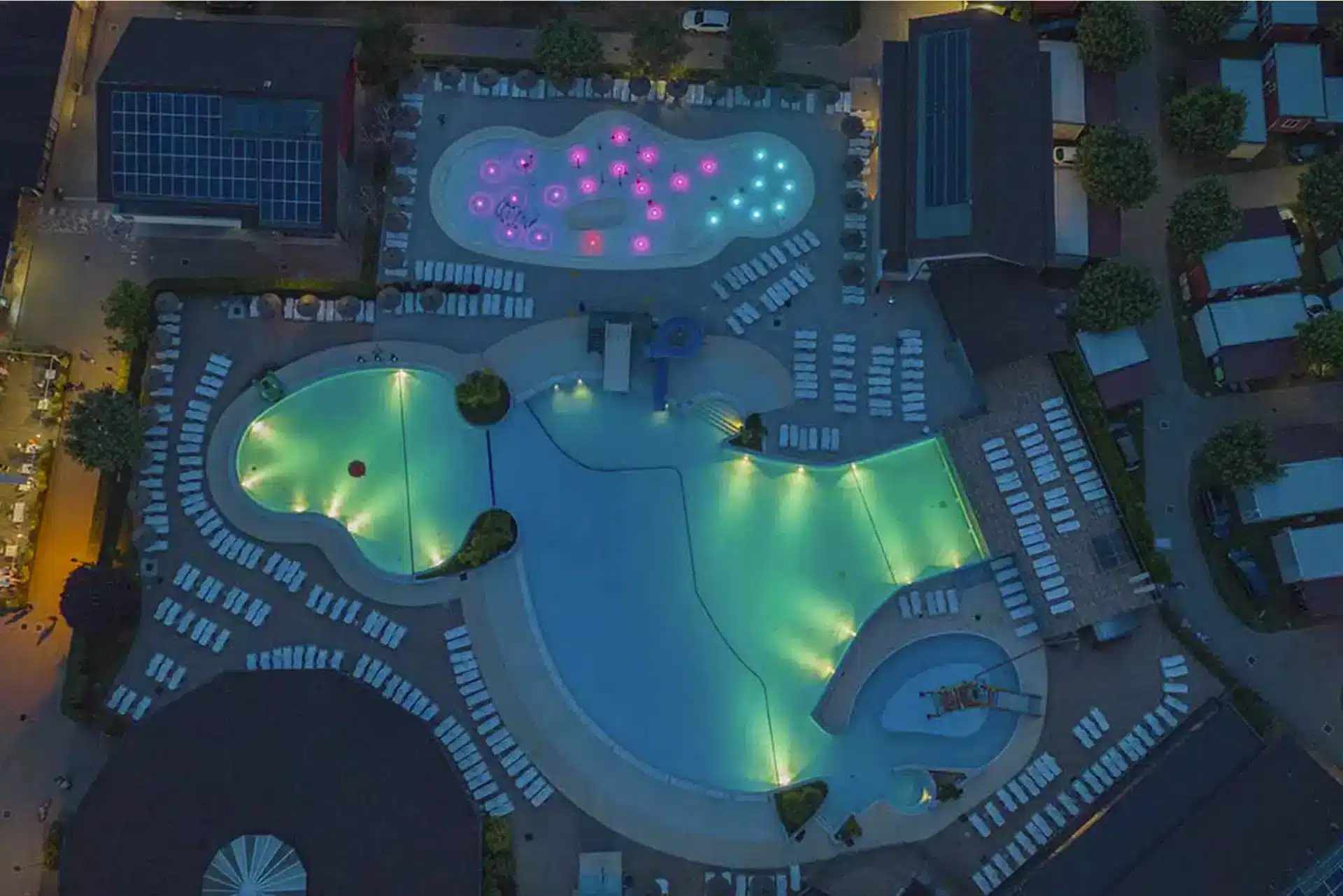 Each element is designed to provide maximum fun in total safety. In addition, a modern RGBlighting system transforms the lagoon into a spectacle of color as the sun goes down.