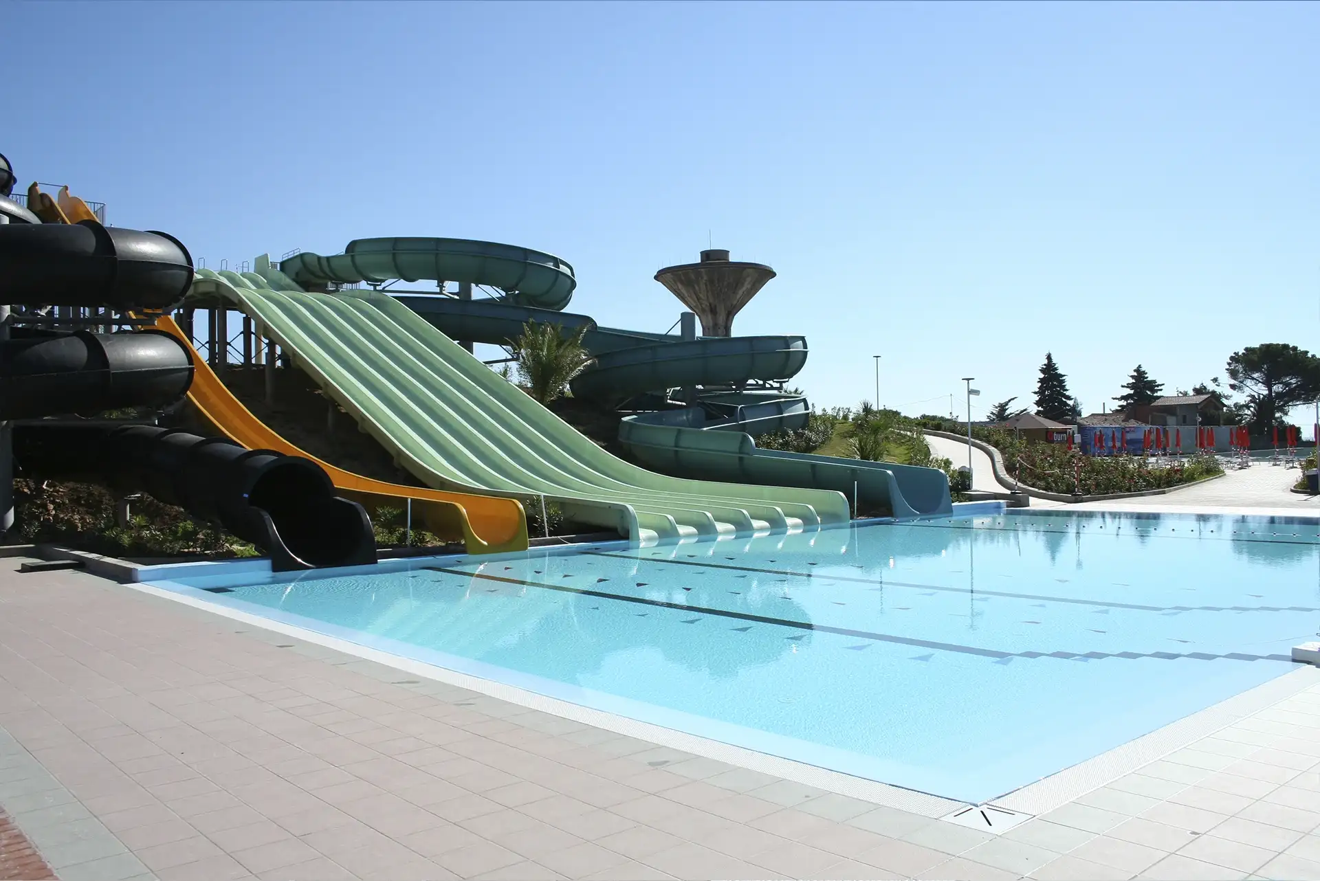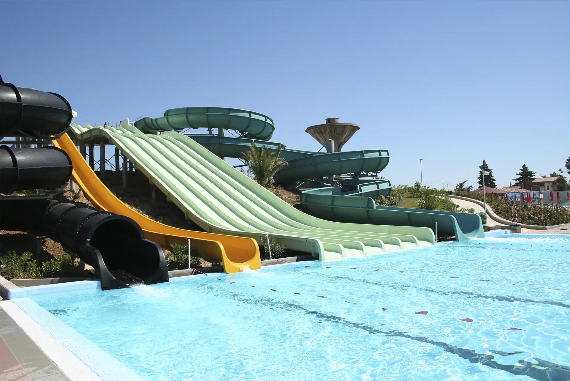 The park features a varied complex of water slides, including the Black Hole, Kamikaze, Niagara Falls and the Giant Slide. Each slide ends in an arrival pool designed to ensure maximum safety.